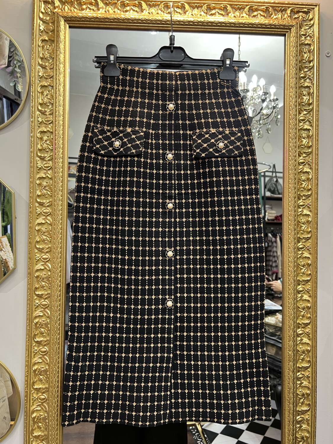 Gonna in Maglia a Matita Quadri Camel